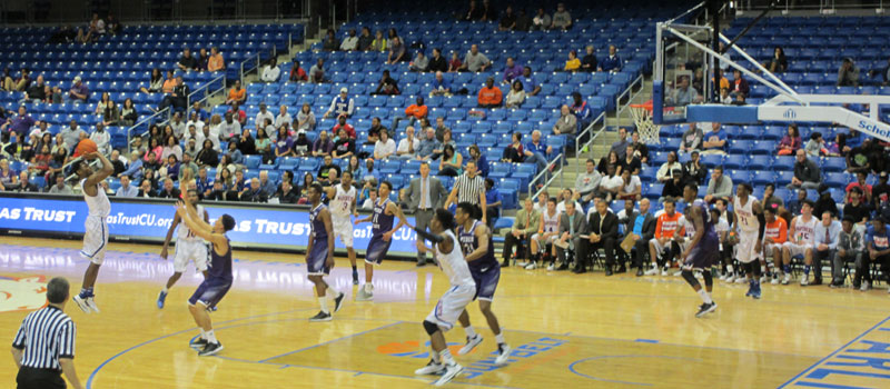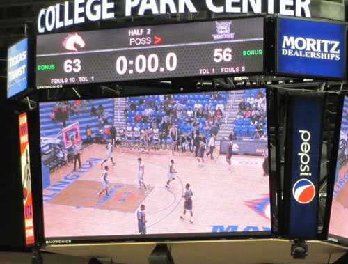 But after a UTA layup to open the first half put the lead at 9 (30-21), WSU got hot with some good outside shooting and a couple of impressive dunks (guard Jeremy Senglin from Arlington-Bowie made three consecutive threes) and next thing you know, the Mavs are down 38-30 with about 9 minutes left.